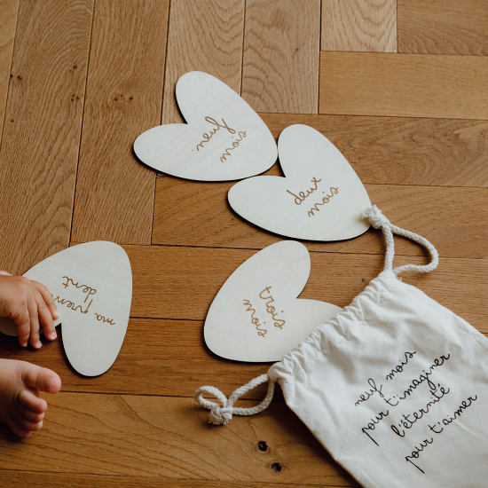 Lot de 12 cartes étapes en bois gravées en recto verso