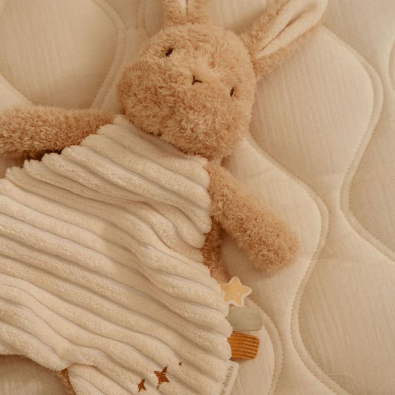 Dès les premiers jours, bébé a besoin de repères, de douceur et de réconfort. Ce doudou en forme de petit lapin deviendra vite son meilleur ami. Avec ses grandes oreilles toutes douces, son tissu côtelé texturé et ses nœuds faciles à attraper, il est pensé pour accompagner les tout-petits dans leurs premiers moments de tendresse.